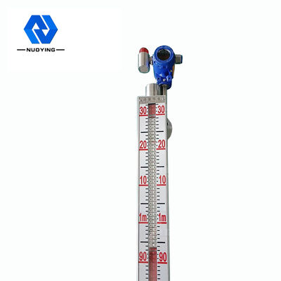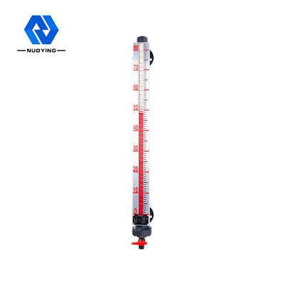 La jauge de niveau à volet magnétique (également connue sous le nom de jauge de niveau à flotteur magnétique) est développée sur la base du principe de la flottabilité et du couplage magnétique.Lorsque le niveau de liquide dans le récipient mesuré monte et descend, le flotteur magnétique dans le tube du corps de la jauge de niveau de liquide monte et descend également, et l'aimant permanent dans le flotteur est transmis à l'indicateur de colonne à bascule magnétique par couplage magnétique, entraînant le colonnes à bascule rouge et blanche pour basculer à 180 °, lorsque le niveau de liquide monte, la colonne à bascule passe du blanc au rouge, et lorsque le niveau de liquide baisse, la colonne à bascule passe du rouge au blanc, et la jonction rouge et blanche de l'indicateur est la hauteur réelle du niveau de liquide à l'intérieur du récipient, de manière à obtenir un niveau de liquide clair.instruire.